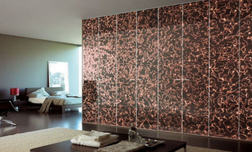 - Скинали. Панели из закаленного стекла устойчивы к температурам, ударам и влажности. Их легко мыть, а на обратную сторону можно нанести любое изображение, подходящее по интерьеру.