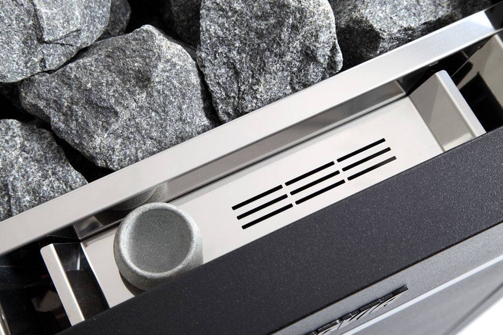 При выборе электрокаменки попадаются модели со словами “combi”, “vapor”, “steam” и пр. Такие нагреватели оборудованы дополнительным отсеком для воды, в котором она нагревается от отдельно ТЭНа. На выносной панели управления от каменки выставляется не только температура, но и влажность. В плате программно заложена зависимость температуры от влажности. Т.е. при более высокой температуре потребуется меньшая влажность для достижения комфортного микроклимата сауны. При температуре 90 °C невозможно будет выдержать влажность 80%, поэтому вы не сможете выставить на пульте такие параметры.
