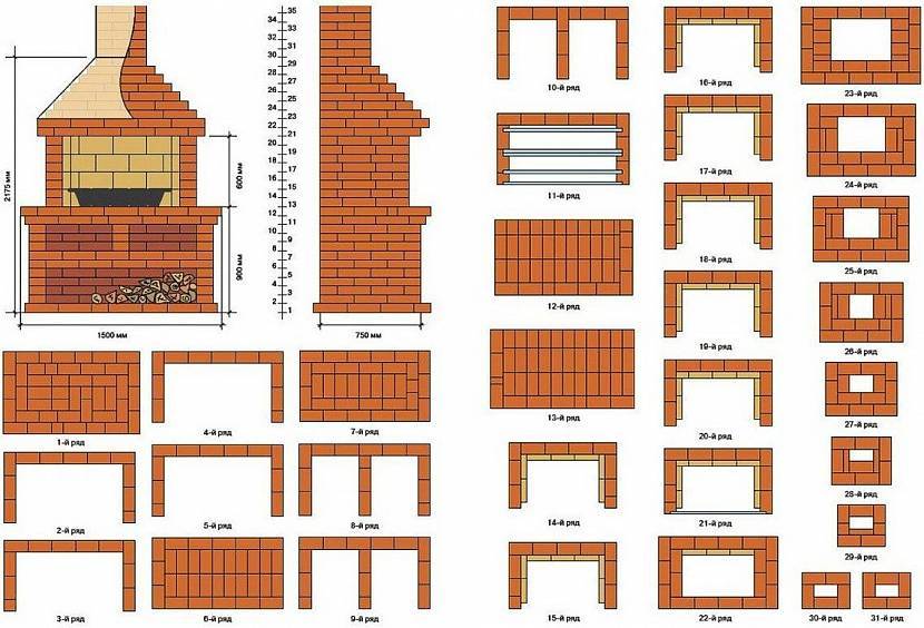 Более сложный вариант — мангал с дымоходом. Для его строительства понадобится детальная схема — порядовка.