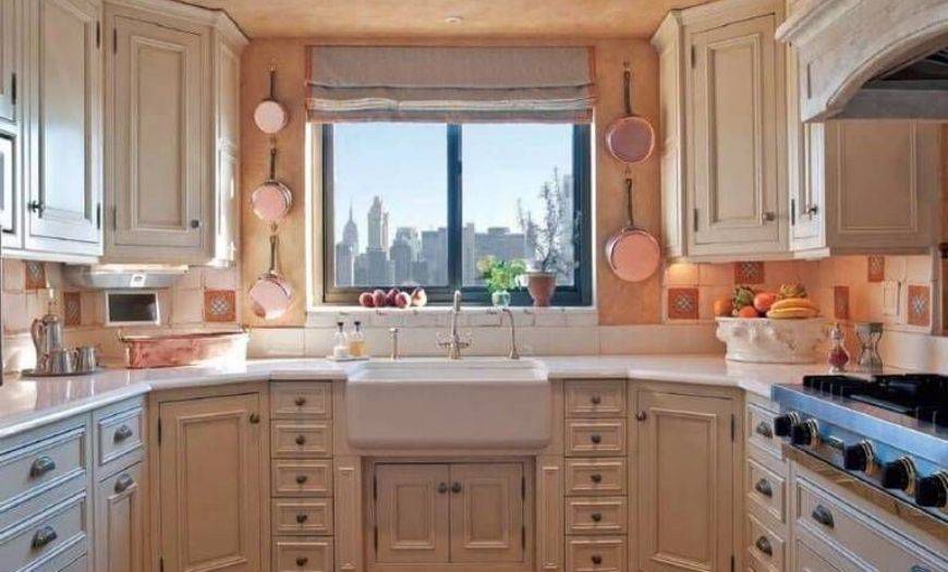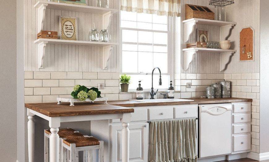 Препятствием для создания сельского стиля в малогабаритном помещении могут стать неровные стены и выпирающие выступы, т. к. они будут затруднять установку мебели.