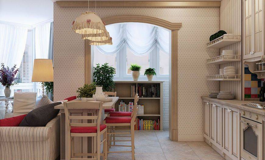 - Выделение зон аркой. Прием, который в интерьере прованс используется редко, поскольку не подходит для небольших помещений с низким потолком.