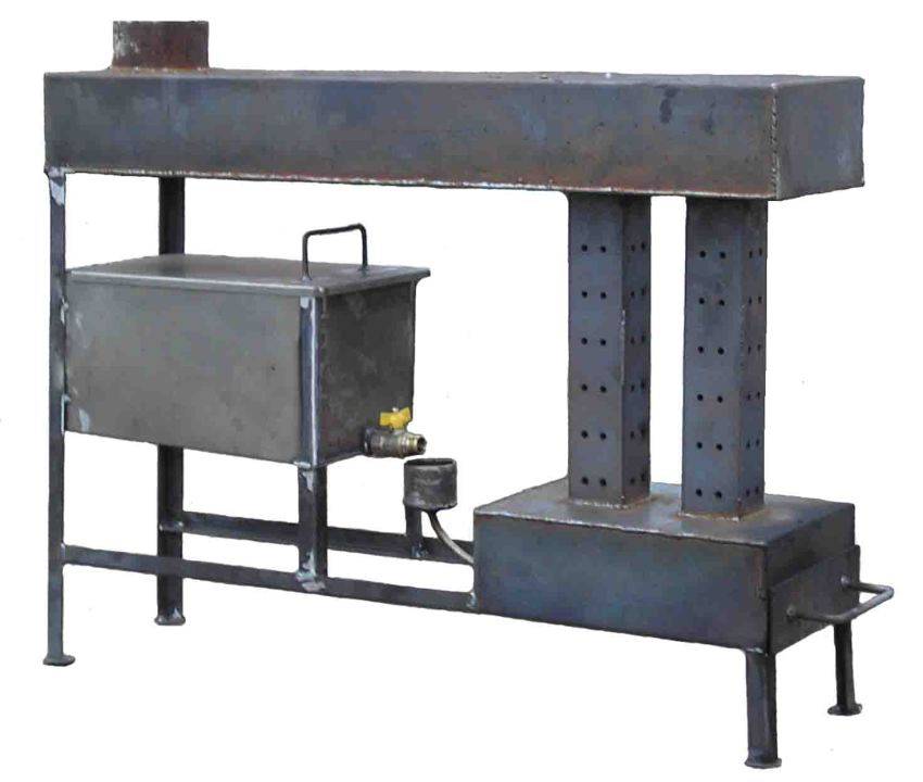 Часть масла не успевает испариться и сгореть и стекает ниже отверстия, попадая в поддон для сбора топлива. Далее отработка перетекает из поддона в топливный бак и используется повторно.