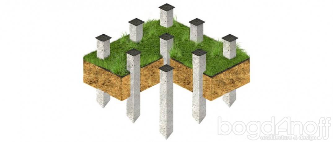 Свайный фундамент представляет из себя группу свай, заглубленных в землю на разных уровнях в зависимости от типа грунта.