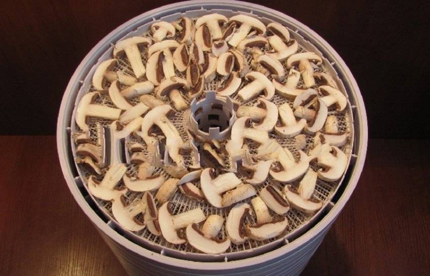 Самым современным и удобным способом сушки шампиньонов является использование для этого электрической сушилки. Принцип работы этого прибора очень прост — на специальные поддоны выкладывают грибы. После этого на электросушилке задаётся определенная программа. Грибной полуфабрикат готов к хранению через 8–10 часов после начала сушки. Этот способ позволяет максимально сохранить все витамины и минералы, содержащиеся в грибах.