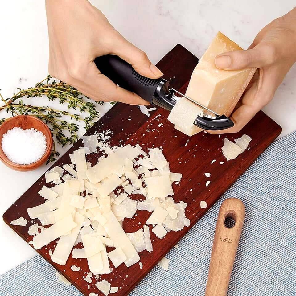 - Применяйте прорезь в доске для разделки – через нее будет удобно ссыпать нарезанные фрукты, зелень и овощи, и ничего не упадет мимо.
