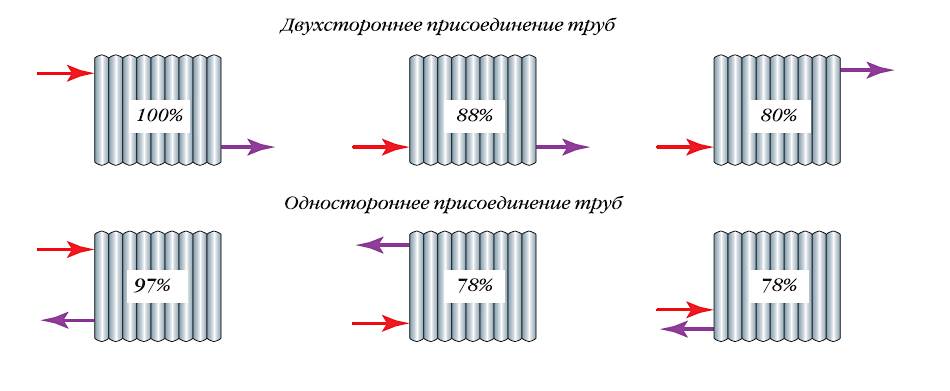 Существенное влияние оказывает и способ подключения радиаторов: