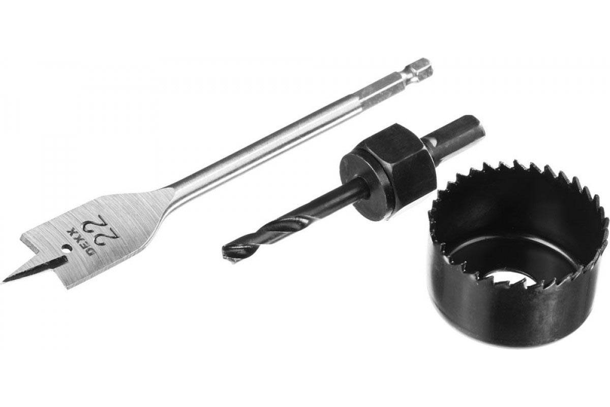 Готовый набор для врезки замков в межкомнатные двери (по дереву): перьевое сверло, державка, коронка
