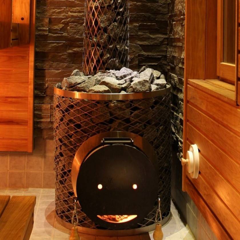Главное отличие закрытой каменки — камни располагаются внутри агрегата. Нагреваются элементы через стенки топки, горячий дым. Булыжники способны нагреться до температуры 400-700 градусов.