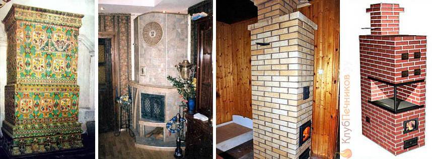 Некоторые распространенные разновидности голландских печей показаны на рисунке. Первая – классическая старинная. Отреставрированные, такие представляют собой ценнейший антиквариат, стоимость которого может превосходить стоимость помещения, где они расположены. А новую классической конструкции выбором декора легко вписать в любой интерьер благодаря простоте ее формы.