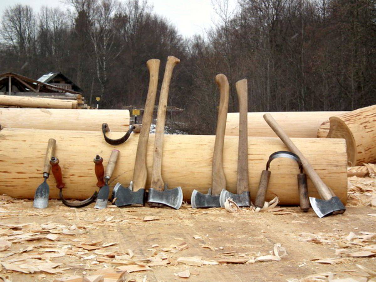 При обработке ручными инструментами – топором, стамесками, скобелем, рубанками и фуганками, древесные трубочки-капилляры оказываются закупоренными и больше не могут забирать и копить воду. В результате сруб лучше держит тепло и значительно меньше болеет. Современные мастера выбирают лучшее из двух технологий – они экономят свое время и труд, работая электроинструментом и бензопилой, но оставляют несколько сантиметров до отметок. А затем делают дорубку при помощи топора и ручных инструментов, закрывая или «затюкивая» капилляры дерева. Специалисты говорят, что при таком способе работы срезы древесины не отличаются от обработанных вручную.