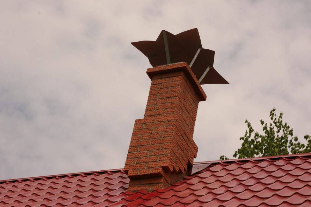 Оголовок трубы дымохода, пройдя через кровлю, должен возвышаться над ней не менее, чем на полметра. Если крыша имеет плоскую конструкцию, то оголовок над ней поднимают на высоту в один метр.