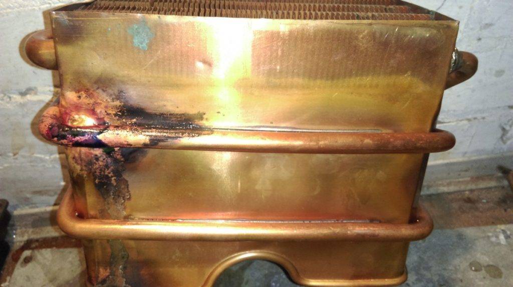 При течи теплообменника не всегда удается выполнить ремонт пайкой. Часто узел не подлежит ремонту и требует замены.