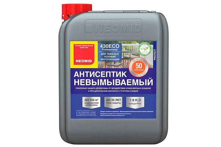 Это водный раствор с антисептическими свойствами. Такая пропитка подходит для применения в помещениях с повышенной влажностью, например, в бане или сауне, а также высокими эксплуатационными характеристиками. Раствор не нуждается в регулярном обновлении, а срок защиты может достигать 35 лет.