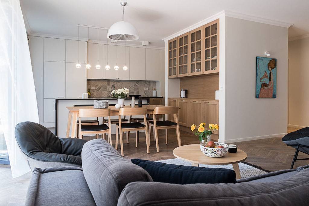 В качестве альтернативы полной смене места расположения кухни выступает идея зонирования пространства перегородками