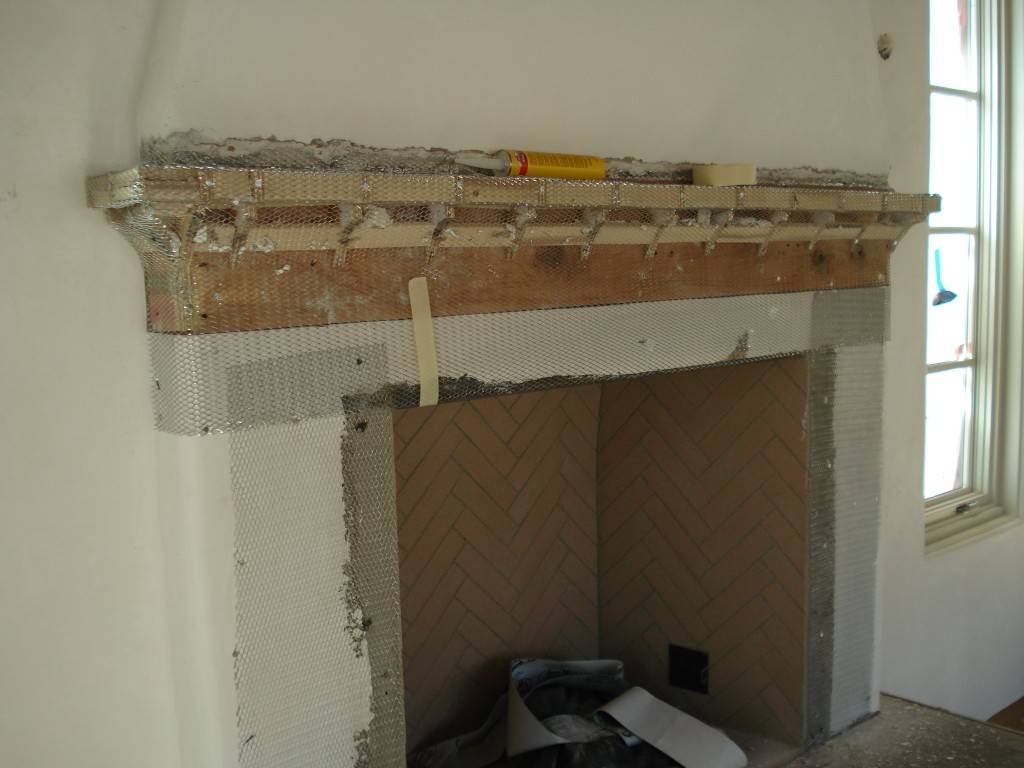 Стена, к которой крепится каркас, покрывается жаропрочным материалом.