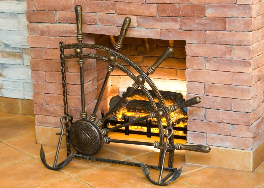 - Лучше оформить топку имитации камина кованной металлической решёткой. Её можно купить или заказать в мастерской.