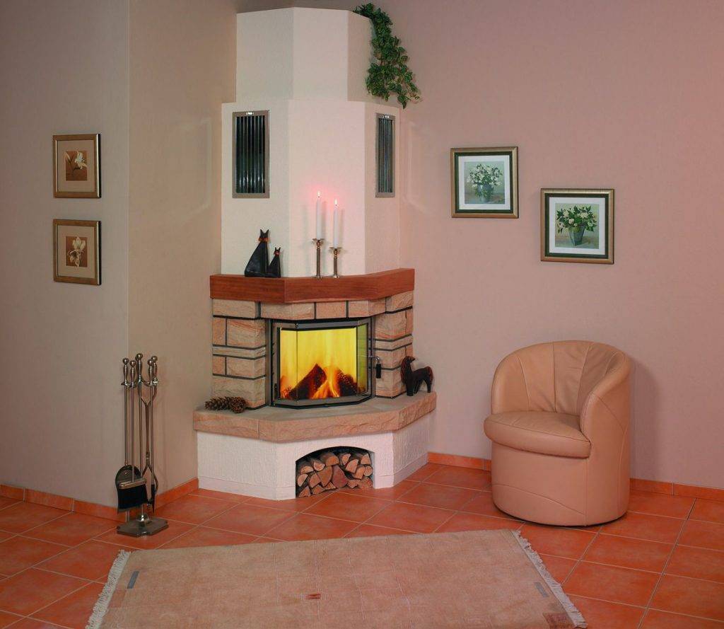 Если комната, в которой хотите поставить имитационную печь, не велика размером, то в самое время подумать об установке камина угловой формы. Так как в небольших жилищах угол обычно бывает местом ничем не занятым.
