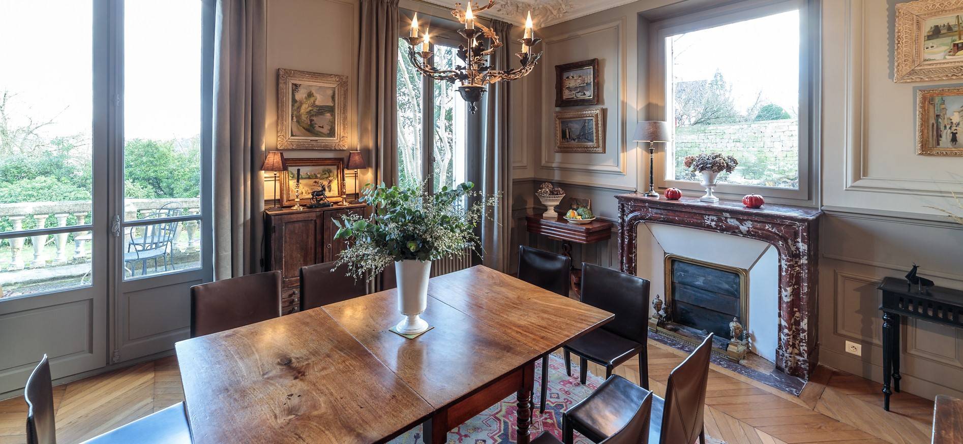 Современный обеденный стол удачно дополнят стулья, обитые тканями эпохи Возрождения. В качестве альтернативы используйте традиционную мебель и сочетайте ее с брутальным освещением в индустриальном стиле. Деревянные панели на стенах и натуральный текстиль визуально согреют строгий и холодный контемпорари.