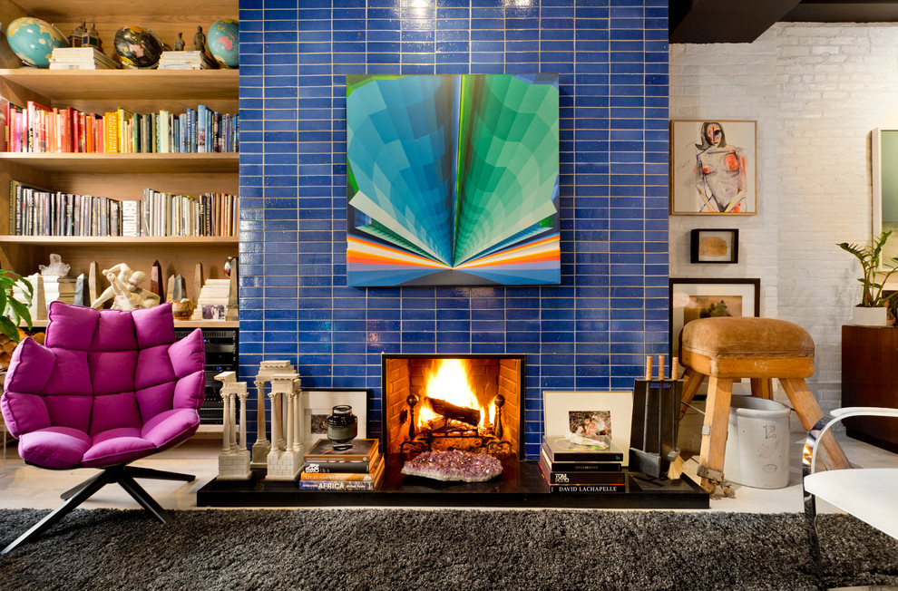 Красивый камин с индийской чёрной плиткой. Дизайн Levy Art & Architecture