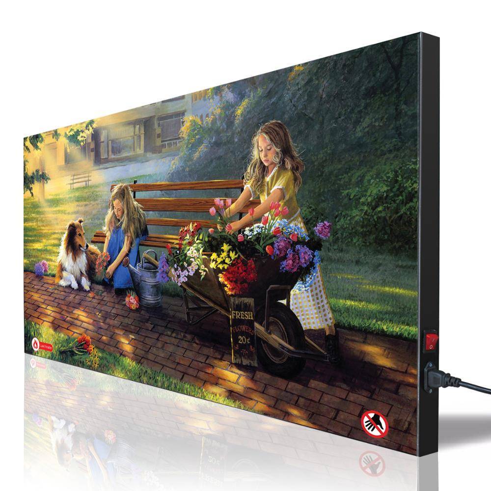Еще одно различие заключается в окантовке изображения. Полотна недорогих моделей крепятся к двум горизонтальным планкам из дерева либо ПВХ, которые не дают нагревателю соприкасаться со стеной.