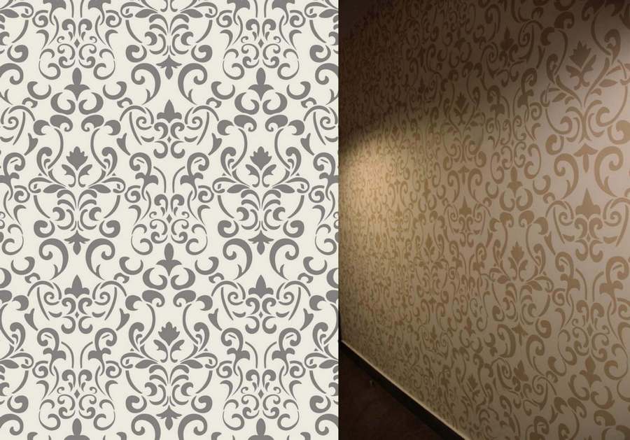 Трафарет прикрепляют к слою штукатурки при помощи скотча малярного. И затем начинают валиком наносить смесь от краев к центру. Получается необычное украшение.