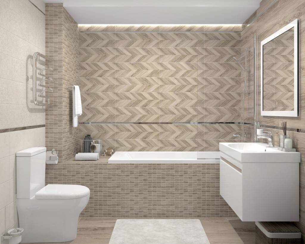 - обычно в процессе такой облицовки тратиться больше материала из-за того, что каждый второй ряд приходится обрезать плитку не с одной, а с обеих сторон. Для того, чтобы этого не случилось можно выбрать плитку небольшого размера и точно рассчитать промежутки на швы, хотя на практике это довольно сложно сделать;