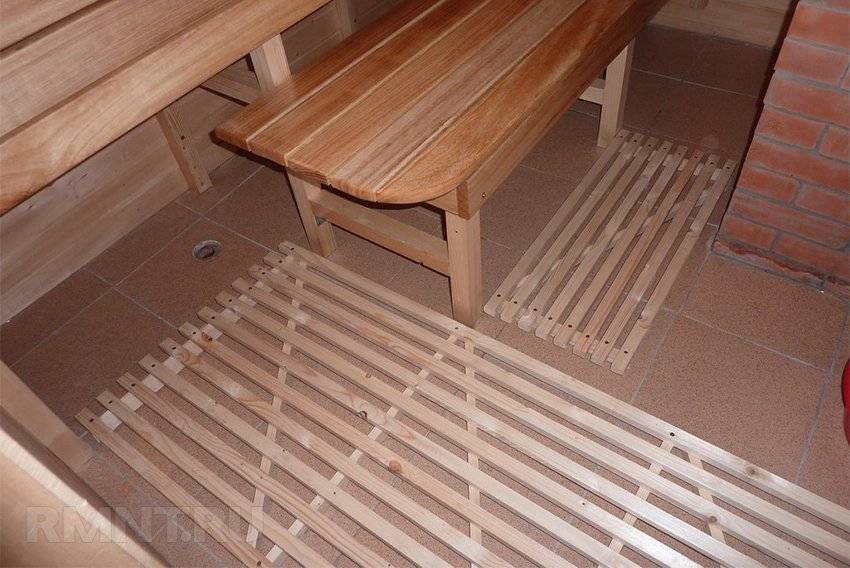 Важный момент: при отделке чистого пола, да и всего помещения парной и моечной, не используйте синтетические строительные материалы — условие особенно актуально для помещения парной!