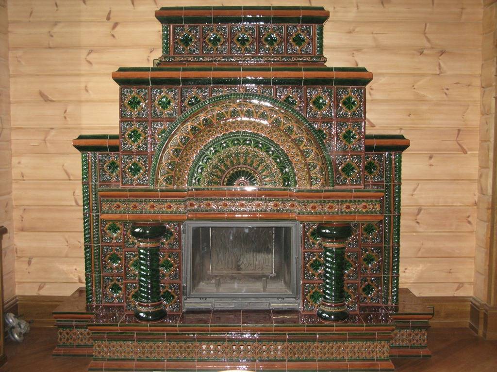 Облицовка камина возможна и путем применения изразцов. С их помощью можно сделать действительно королевский камин. Печи с изразцовой отделкой красиво выглядят, имеют хорошую теплопроводность и продолжительно сохраняют тепло. Поверхность изразцов стойко выдерживает загрязнения, она отличается надежностью и долговечностью.