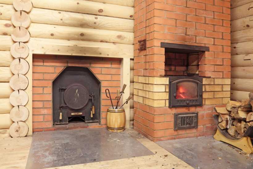 Расстояние от дверцы топки до стены, двери ‒ не меньше 1,25 см. Располагаться она должна по направлению к двери в парную.