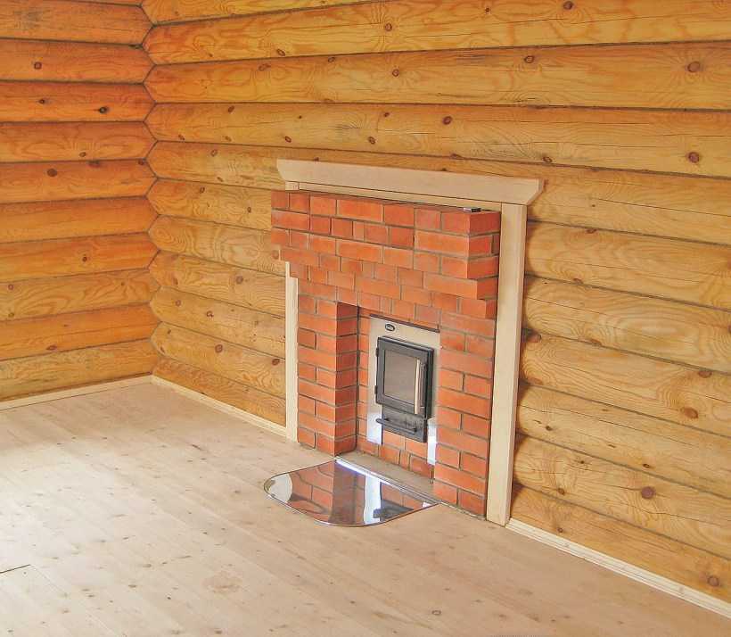 Если печь встраивается в стену из дерева, до нее должно быть расстояние не мене 25 см, заложенное негорючими материалами. В качестве негорючего материала можно использовать все тот же кирпич: уложите между печью и стеной стенку в один кирпич. Этого должно быть достаточно для обеспечения противопожарной безопасности.
