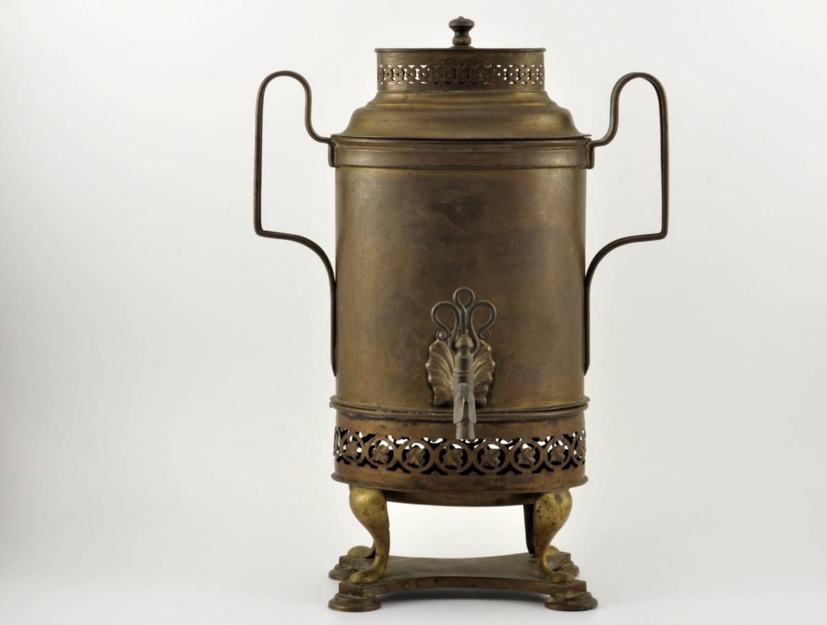 - Наиболее дорогостоящим изделием считается водогрейный аппарат, выполненный в мастерской Фаберже. Для изготовления использовали серебро или позолоту. В качестве декоративных элементов применяли необычную чеканку, литьё или просечку.
