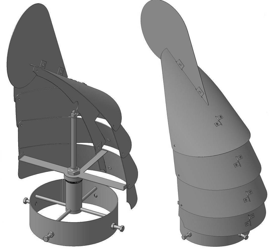 В случае использования приспособления с розой ветров в дымовом канале сверлом создают 3 дырочки. Отверстия проделывают на одном уровне, чтобы чуть позже вставить в них болты. Эти крепёжные детали погружают в дырочки, когда в срез дымоотвода помещают кольцевую деталь дефлектора-флюгера. В подшипник в виде кольца вставляют ось, на неё поочерёдно нацепляют цилиндр, полотно устройства и колпак. Элементы дефлектора флюгера объединяют кронштейнами или заклёпками.