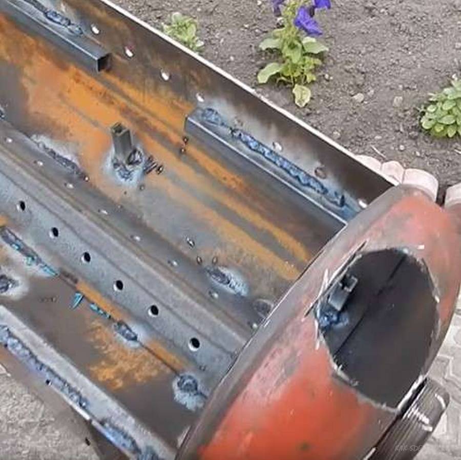- Вырезать в торцах 2 баллонов отверстия для дымовой трубы.