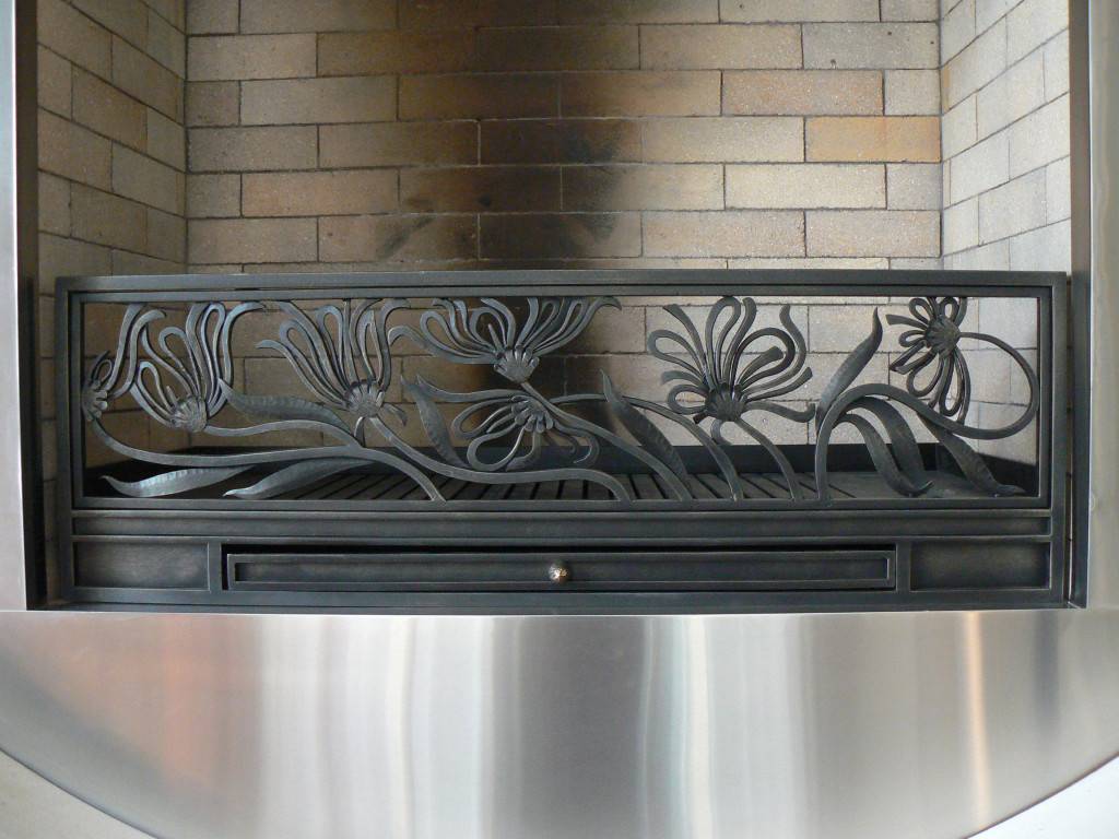 Встраиваемые. Данные элементы как правило должны иметь очень точные размеры для того чтобы хорошо и герметично вписаться в отведённое пространство очага. Такие кованые решётки для камина монтируются прямо в самой топочной камере и находятся под постоянным воздействием высоких температур;