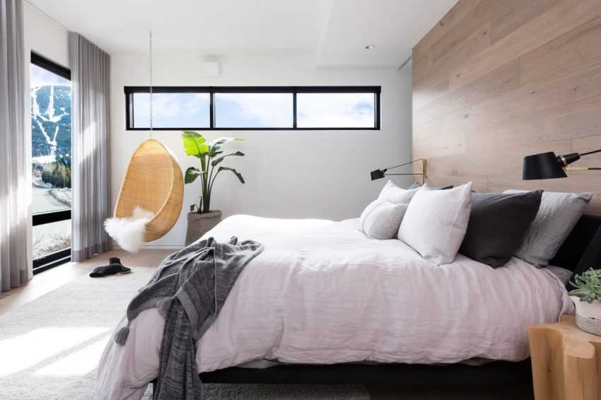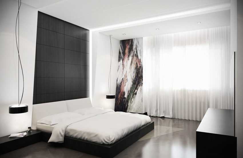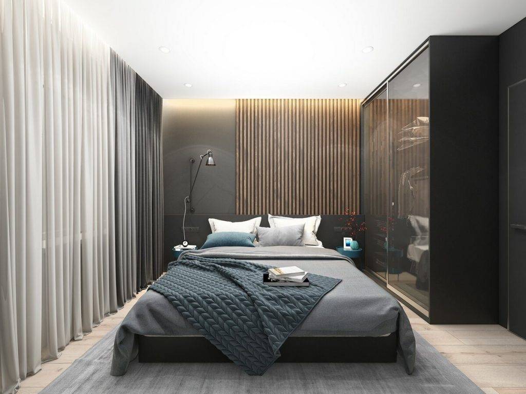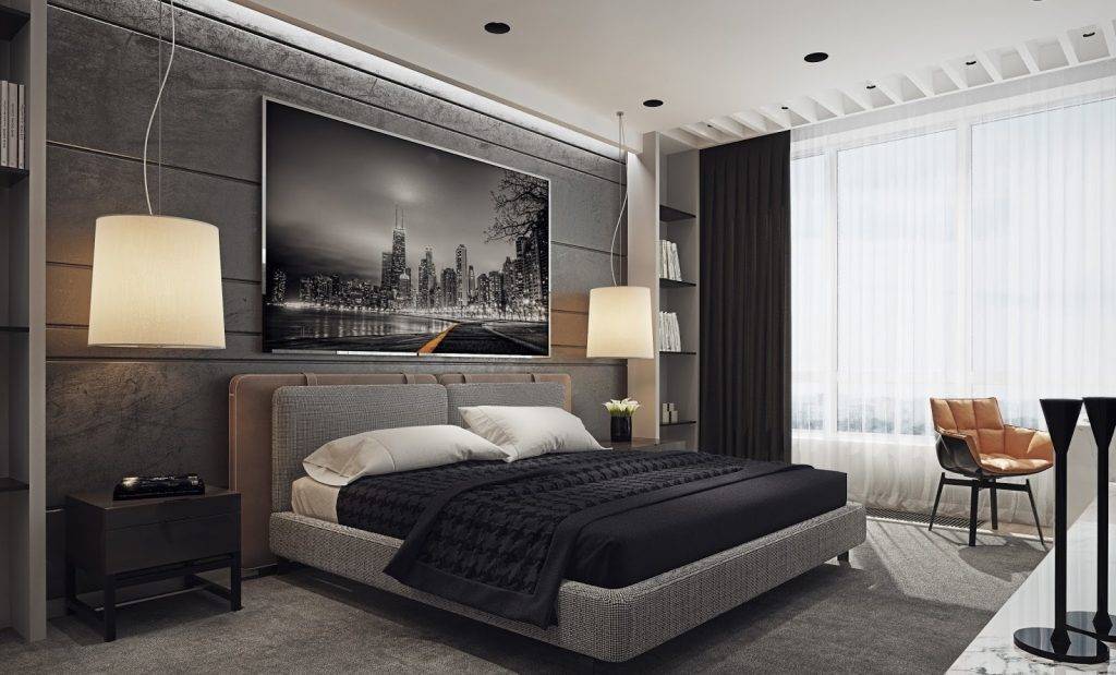 Интерьер в стиле контемпорари, идеально подходит для спальни.