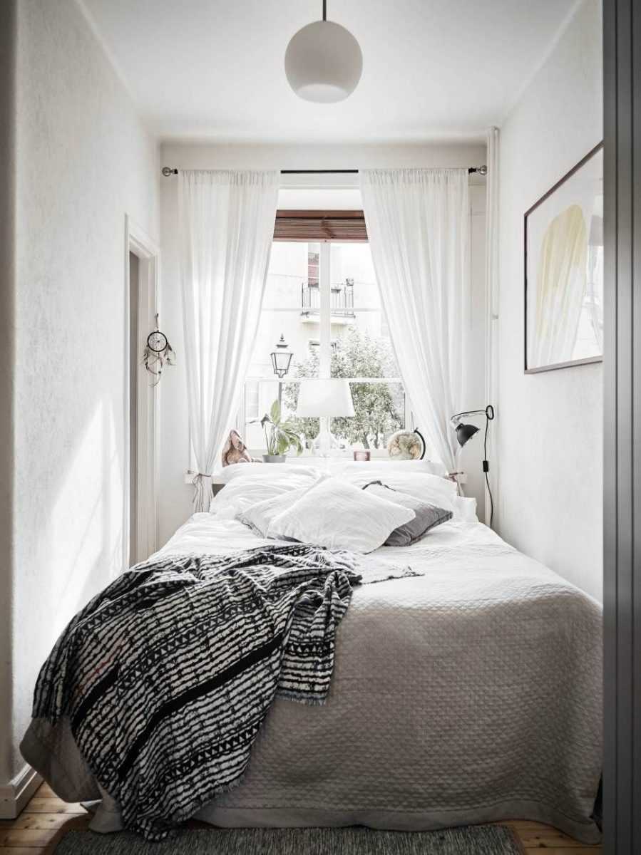 Изголовье также может быть оптимизировано, так как это помогает избежать использования громоздких тумбочек. Секрет обустройства интерьера маленькой спальни-оптимизация пространства по высоте и углам комнаты. Пространство над дверью также является решением, когда комната действительно маленькая.
