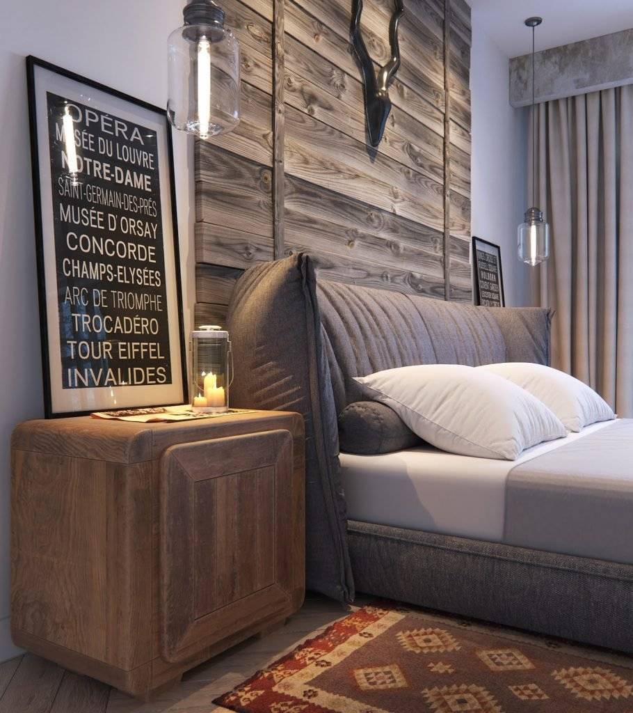 - Минимум деталей. Полностью отказываться от декора необязательно, но можно оформить комнату максимально лаконично. Оригинальные часы и винтажные картины вполне впишутся в стиль.