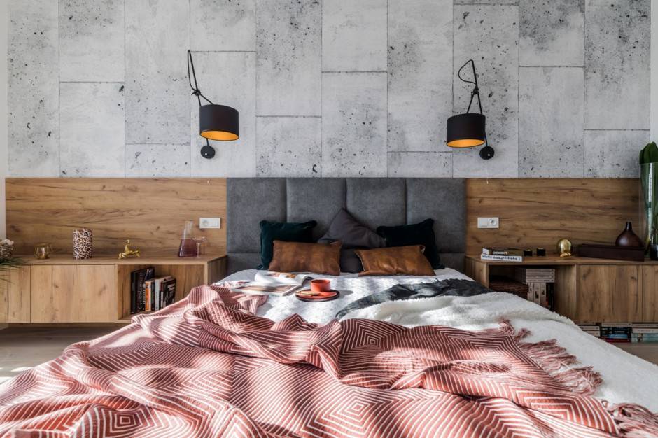 Кроме того, подголовник также будет иметь значение при покупке двуспальной кровати. Вы можете выбрать лестничные подголовники, обтянутые тканью, и полностью деревянные. Еще одно решение — прикрепить его к стене, например, обтянутый бархатом. Обратной стороной такой декорации является то, что она ограничивает возможность быстрой переделки. Также могут иметь значение встроенные элементы кровати, например, прикроватные тумбочки или вместительные ящики для постельных принадлежностей.