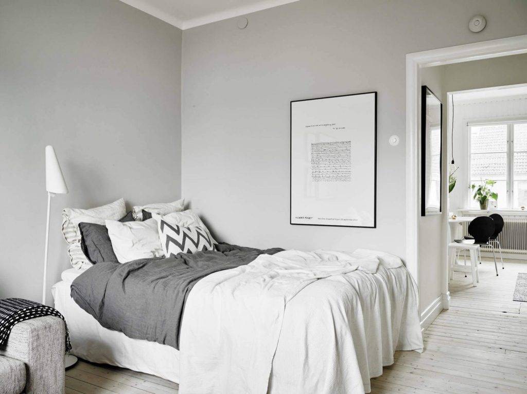 - Используйте светлые пледы, покрывала и произведения искусства, чтобы украсить комнату, это придаст чувство свободы пространства, если бы вы использовали тёмные цвета.