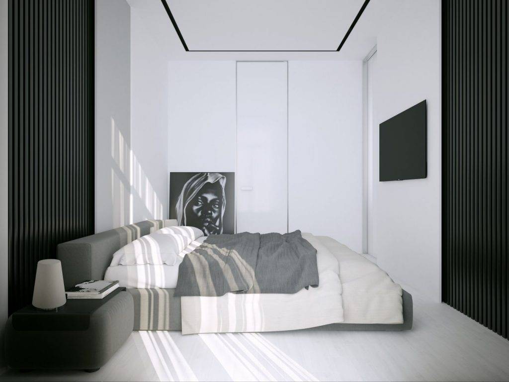 - Минимум текстиля. Покрывала и коврика у кровати будет вполне достаточно.