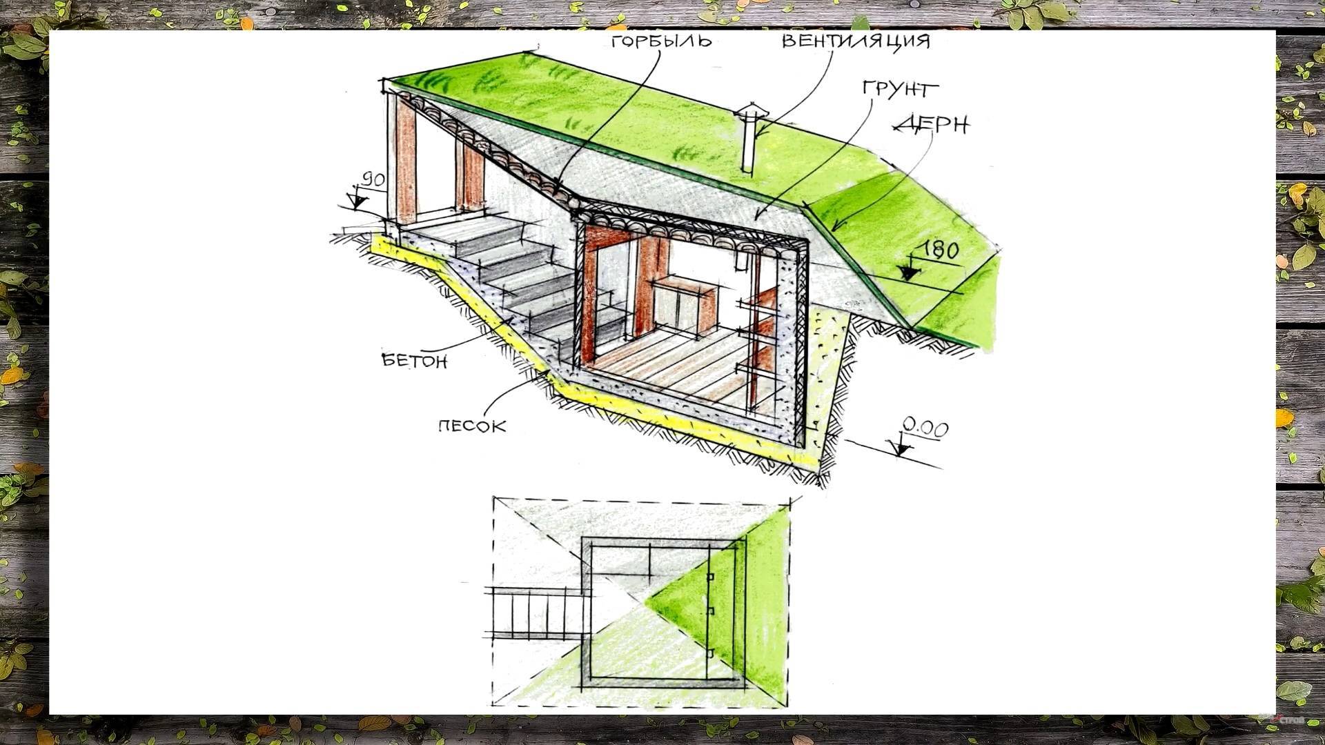 Правильно выбранное место для расположения постройки, влияет на долговечность наземного погреба и качество сохранности продуктов в нем. Строительство необходимо производить на сухом, предпочтительно возвышенном, месте.