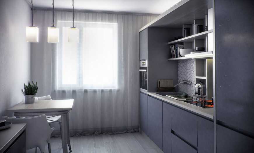 Дизайн интерьера малогабаритной кухни в стиле минимализм