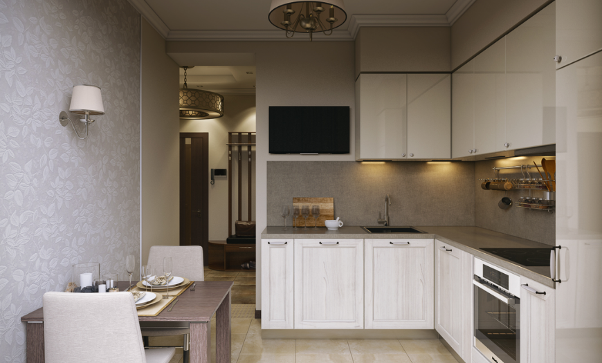 Для создания красивой и удобной зоны приема пищи на небольшой площади необходимо правильно относительно двери, окна, техники и сантехники разместить мебель. При этом учитывается и цветовая гамма, в которой выполнен интерьер. Существует несколько секретов, помогающих грамотно обустроить маленькую комнату.