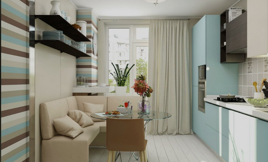 Кухня 9 кв: дизайн с диваном и спальным местом для ребенка