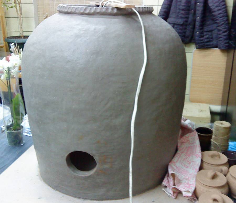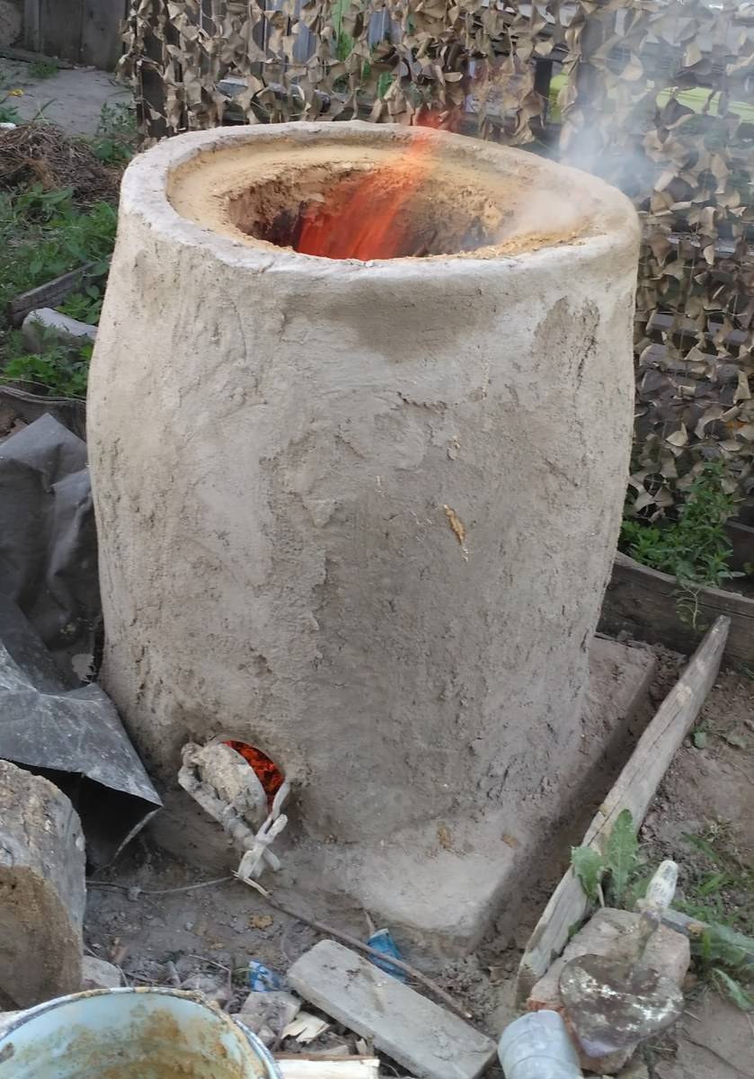 Тандыр, сделанный из нескольких глиняных горшков и наполнителя между ними