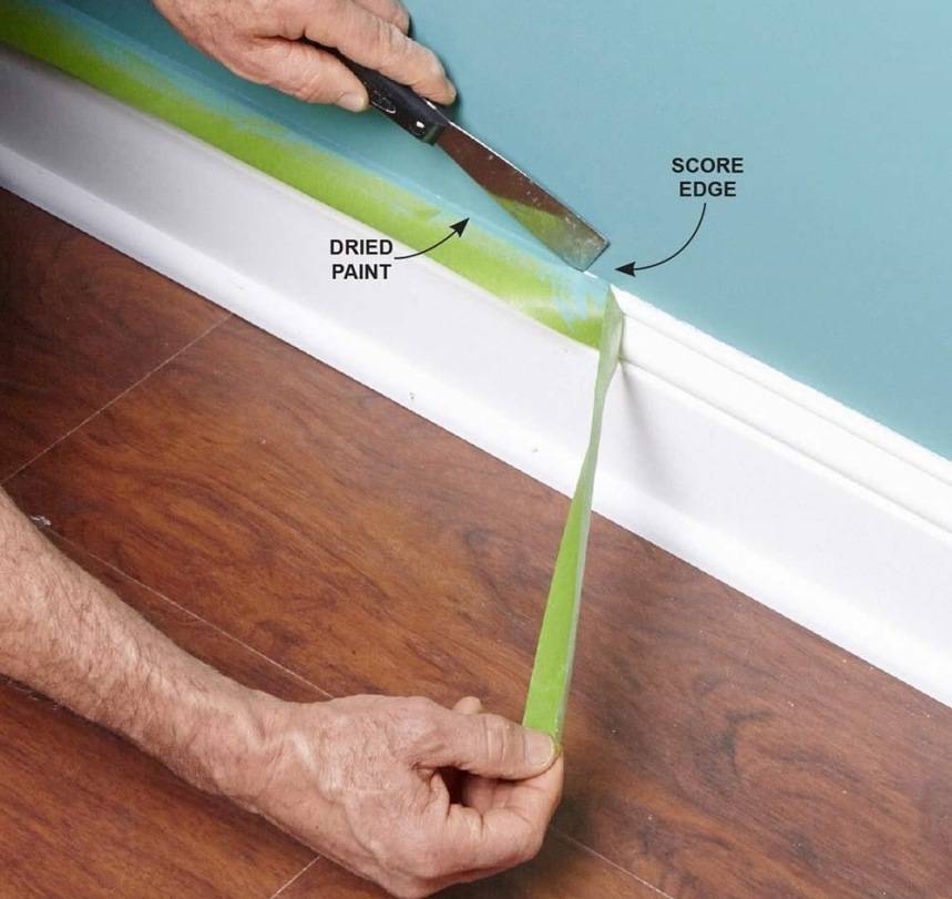 Вот как вы можете поступить. Дождитесь, пока краска полностью высохнет, а затем подцепите край малярного скотча с помощью шпателя, прежде чем удалять его. Благодаря этому вы избавитесь от любых подтёков и наплывов, которые образовались на скотче, и вы сможете удалить его, не испортив покрытие.