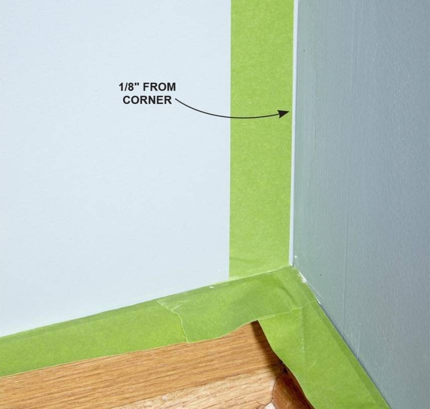 Если вы решили покрасить стены в разные цвета, получить ровную линию стыка в углах может быть довольно сложно, особенно если угол скруглён или на нём несколько слоёв краски. Но есть небольшая хитрость – нанесите краску одного цвета рядом с углом. После того как краска высохнет, наклейте на прокрашенную сторону высококачественный герметизирующий малярный скотч.