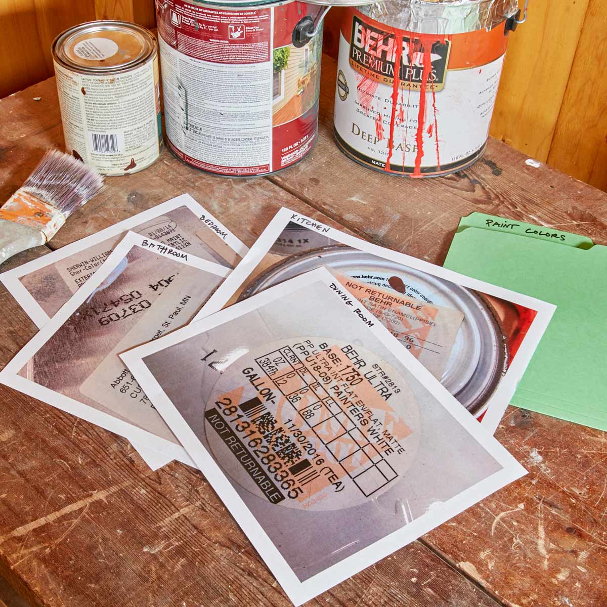 Случалось ли такое, что вы выбрасывали банку из-под краски, а затем жалели об этом, потому что не могли вспомнить номер или название цвета, которым покрасили комнату? На крышках обычно наклеены этикетки с информацией о цвете краски. Фотографируйте их и храните на всякий случай (в электронном или бумажном виде).