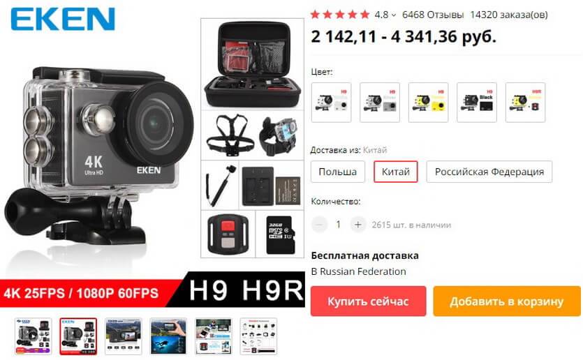 Мечтаете попробовать себя в роли видеоблогера или хотите снимать путешествия для домашнего архива, но не знаете, с чего начать? Закажите эту бюджетную камеру на «Алиэкспрессе». Она идеальна для новичков. Понятный интерфейс, 4K разрешение при 30fps, 1080P при 60FPS, 170° HD широкоугольный объектив, удобное управление через экран. У камеры огромное число заказов и тысячи положительных отзывов (почитайте, чтобы убедиться) – она идеальна для новичков. На выбор – 8 вариантов комплектации. Водонепроницаемый бокс, монопод, карта памяти, кнопка дистанционного управления – все, чтобы ваши путешествия навсегда остались с вами.