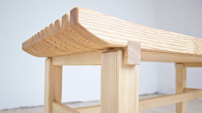 - Для практичного исполнения предметов мебели идеально подойдут полутвердые, твердые и мягкие сорта дерева, а также материалы, основанные на древесине. В качестве ножек зачастую используются оцилиндрованные сосновые заготовки, а для сидений и спинок — доски с сечением 2*12 см, подлокотники оптимально делать из брусков 5,5*3,5 см;